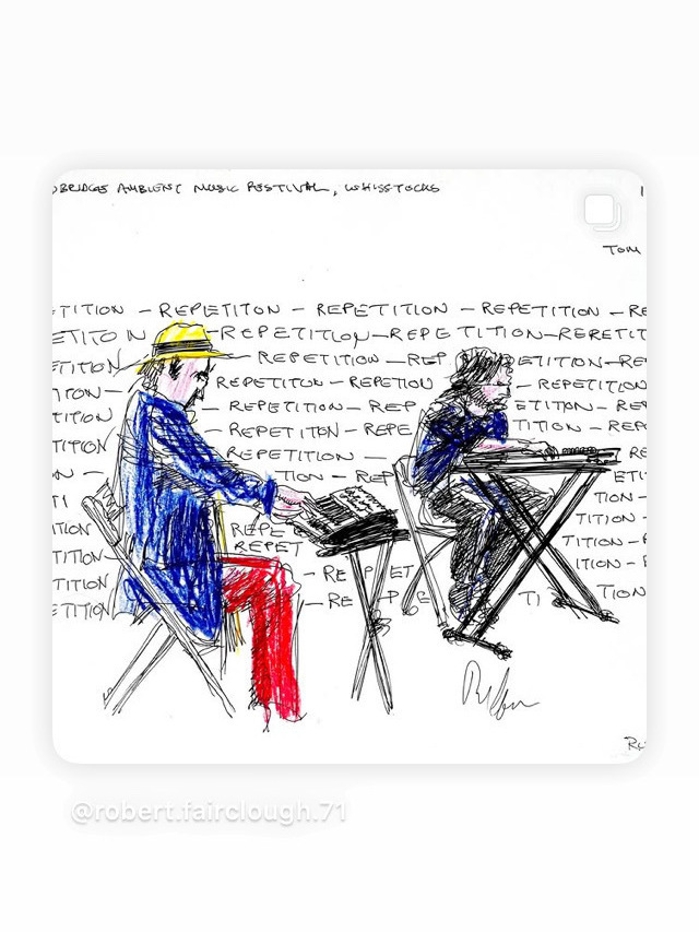 12.30 - live music from Tom Rogerson and Will Fergusson - not to be missed performance of Steve Reich's "Piano Phase"!