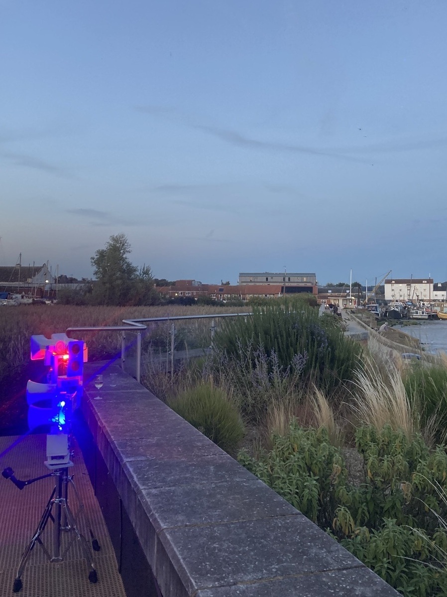 Woodbridge Ambient Music Festival 2025 opened at the Woodbridge Cruising Club on the River Wall with an evening overlooking amazing views of the beautiful river Deben at sunset. Ambient lights and drones from Andrew Booker, from London, opened the evening followed by Suffolk Tales by popular Irish local story teller Bards Aloud accompanied with improvised music from the Drips. Rob Fairclough from Lowestoft, continued slow sketching alongside "music from old vinyl, tired tapes, field recordings" played by Elegy for Good Dogs. Inspiring live music from cellist Clare O'Connell played into the evening and then we all went along to The Riverside Cinema to see the film ‘For all Mankind.” Music scored by Brian Eno, the father of ambient music and brother Roger - both born and raised in Woodbridge. https://www.theriverside.co.uk/programmes/for-all-mankind/